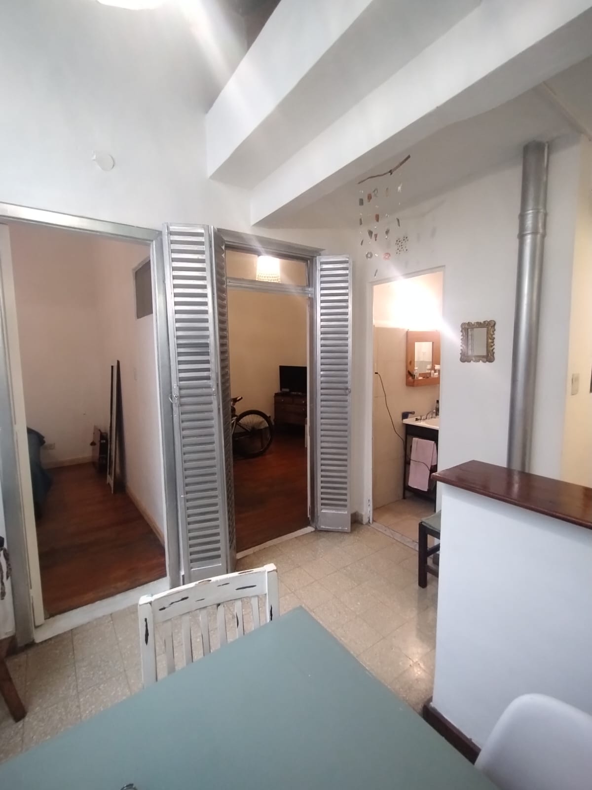 - Al ingresar nos encontramos con un amplio ambiente dividido, una parte podría funcionar como living-comedor-cocina, y la otra parte podría ser un dormitorio; con acceso a la terraza de planta baja.