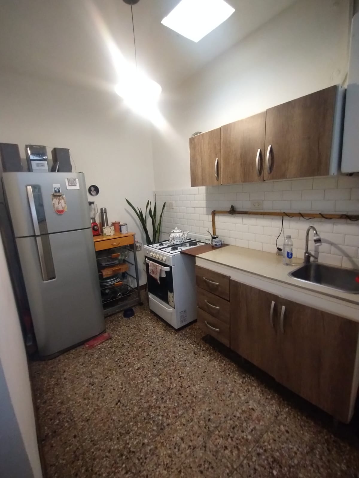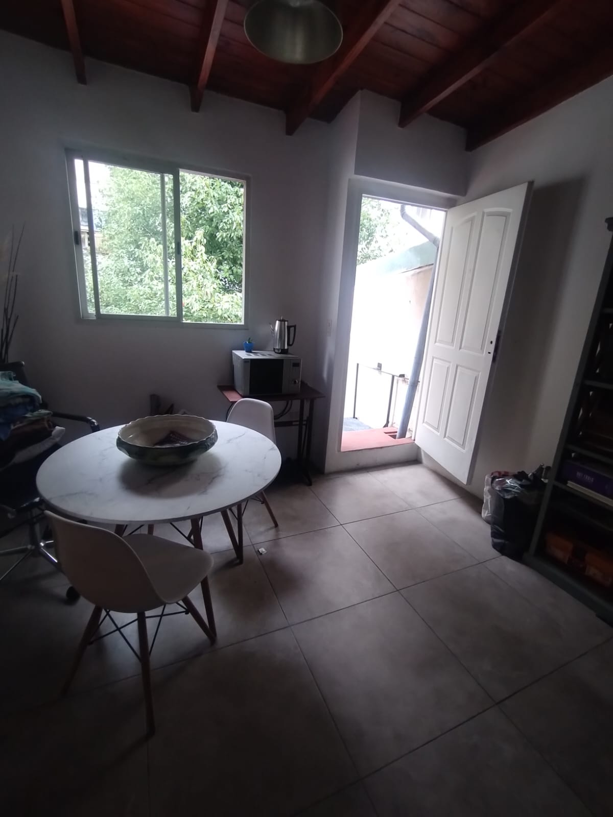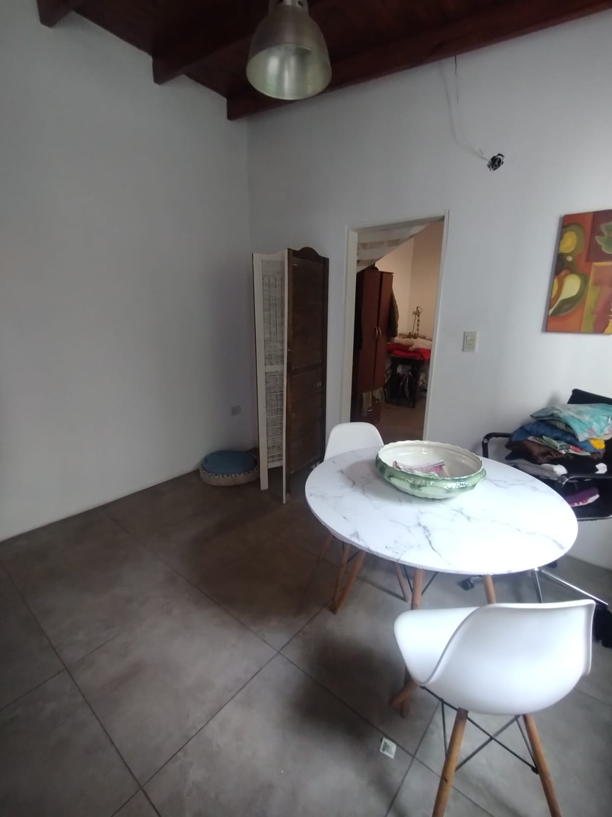 - A la derecha ingresamos al living-comedor con pisos de ceramica, techo alto y recientemente pintado de blanco para aportar luminosidad.