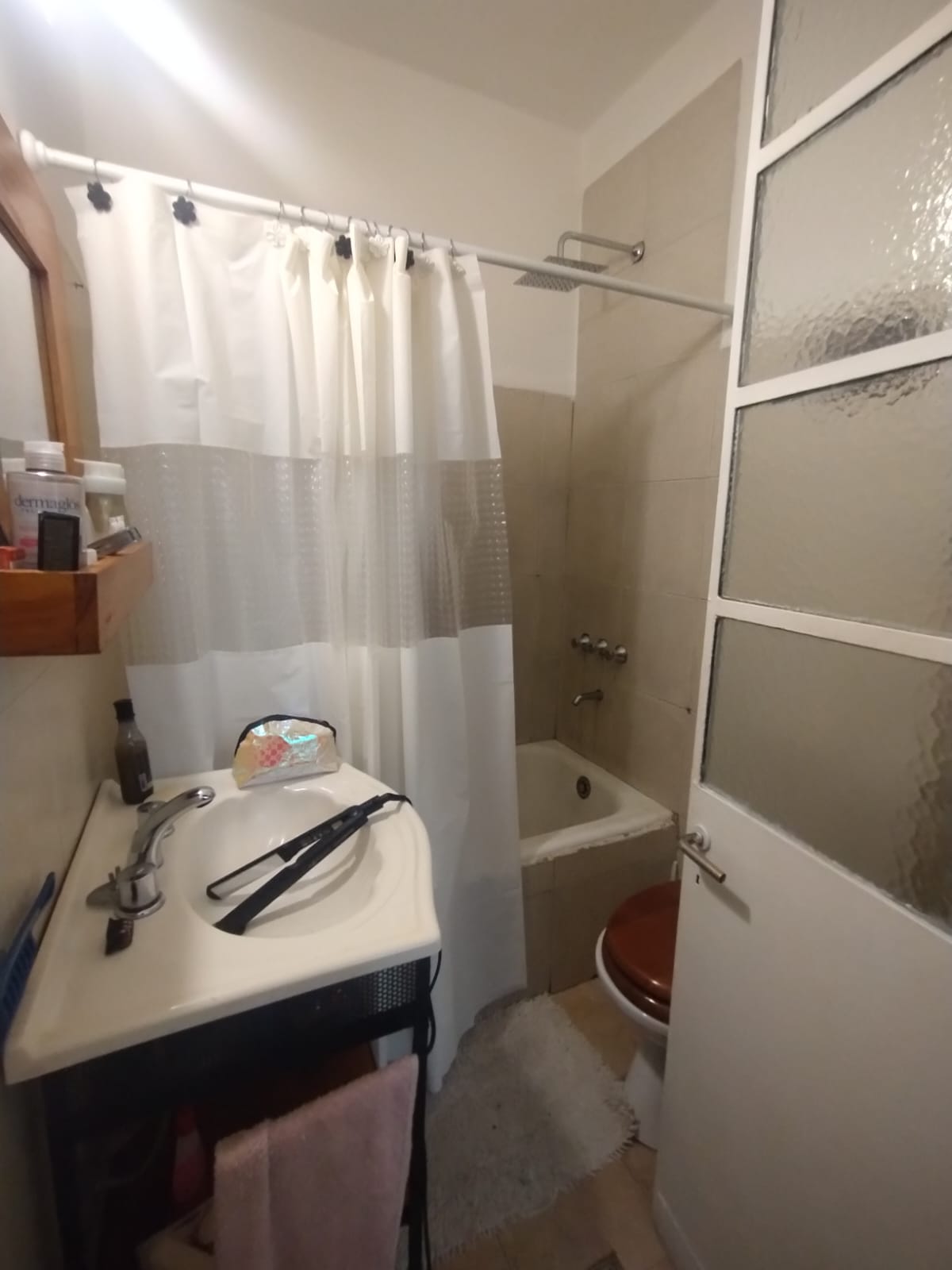 - Baño completo con bañera, pisos y paredes de ceramica, estilo moderno y calido.