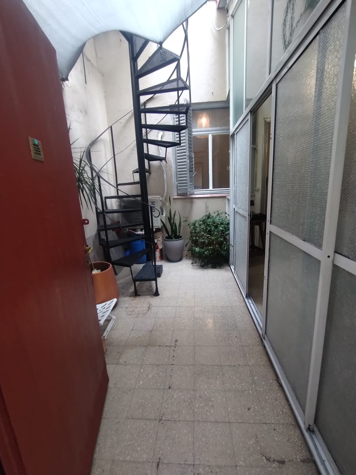 - Ingresamos a la unidad por el patio con vista abierta, conexión para lavarropas y escalera en espiral con acceso al 1º piso.